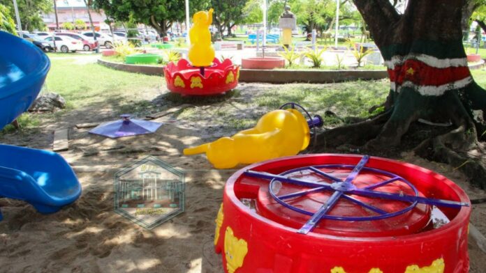 De recent geplaatste speeltoestellen op het Brasaplein in Nieuw-Nickerie, bedoeld voor het vermaak van kinderen, zijn het doelwit geworden van vandalisme.