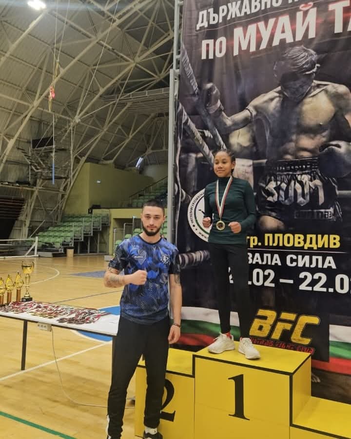 De 12-jarige Tehelya-Arabi Nekrui heeft vandaag een indrukwekkende prestatie geleverd door kampioen te worden in de klasse tot 46-48 kilogram tijdens de IFMA Youth Muaythai National Championships in Bulgarije.
