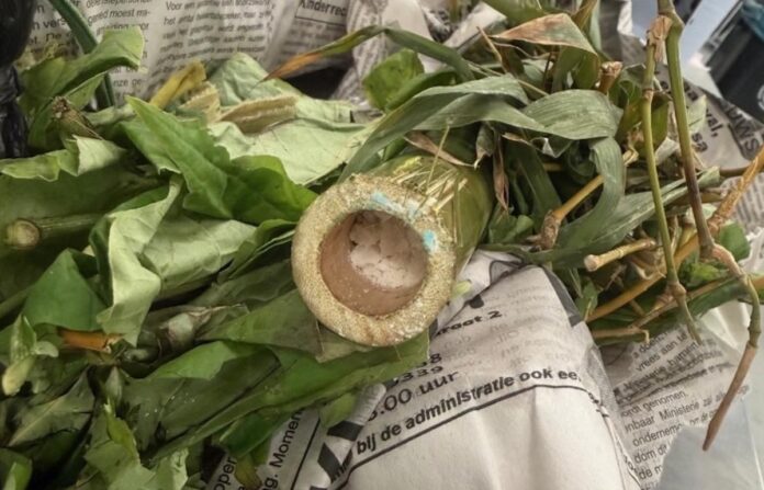 Opvallend is dat de bamboe gewikkeld was in een krant uit Suriname. Of de zending ook daadwerkelijk uit Suriname afkomstig was, is niet bekendgemaakt.