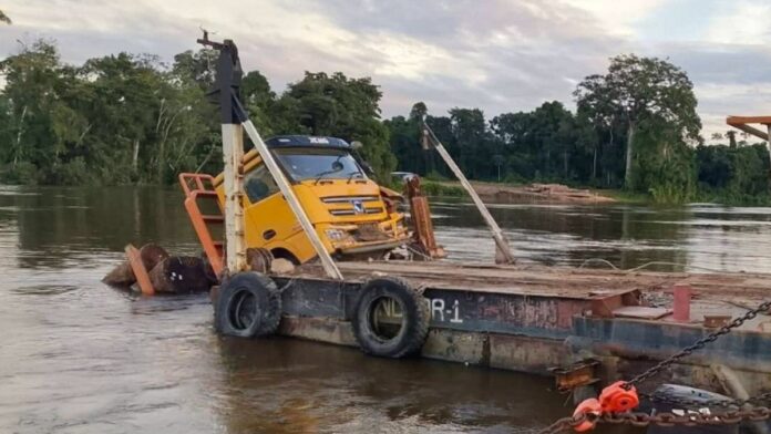 Een met houtblokken beladen truck is donderdag 2 april grotendeels van een drijvend ponton te Jaikreek in de Suriname rivier gerold. Het incident is het tweede in ruim een maand tijd. Op 26 februari kantelde een met houtblokken beladen truck van een ponton in de rivier.