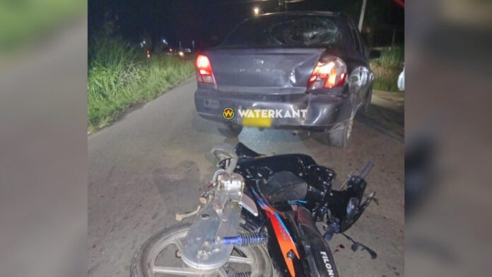 Een bromfietser is zaterdagavond gewond geraakt bij een aanrijding met een personenauto op de kruising van de Frederikshoop- en Mawakaboweg in Suriname.